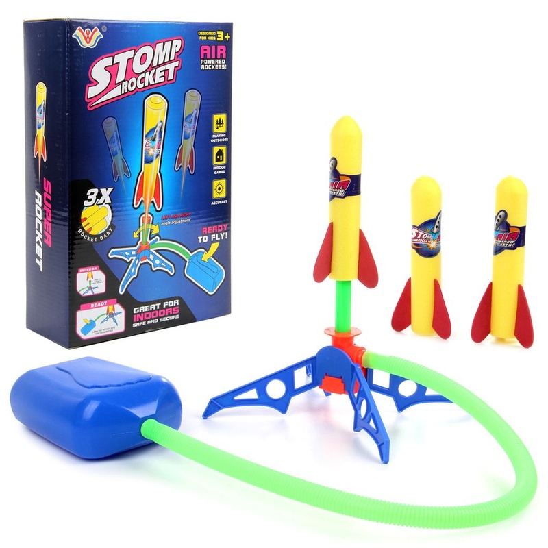 Прекрасный подарок для игра на свежем воздухе. Ракета выполнена из мягкого материала, что позволит избежать неприятных происшествий во время игры. Ракета может улететь на большое расстояние, а направление запуска регулируется, с такой игрушкой отдых на природе станет намного веселее. В комплект входят детали для сборки пусковой установки, 3 ракеты, инструкция. Функционал игрушки: -пусковая установка легко собирается и разбирается; -при нажатии на педаль происходит выстрел; -угол запуска ракеты регулируется. Размеры упаковки: 22*7*31 см. Размеры ракеты: 24*7*6 см. Размеры пусковой установки без педали: 30*30*30 см. Изготовлено из безопасного полимерного материала.