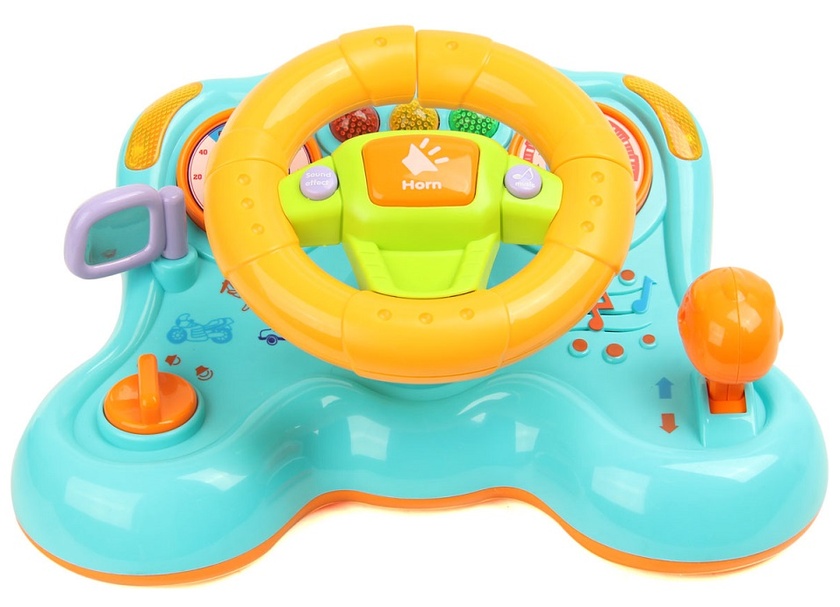 Руль музыкальный, со светом. Играет мелодии без слов и автомобильные звуки. Имеются подвижные детали. Также вибрирует от переключения рычана передач. Работает от 3 батареек АА (в комплект не входят). Размер игрушки: 25*17*14 см. Размер коробки:30,5х21х17,5 см.