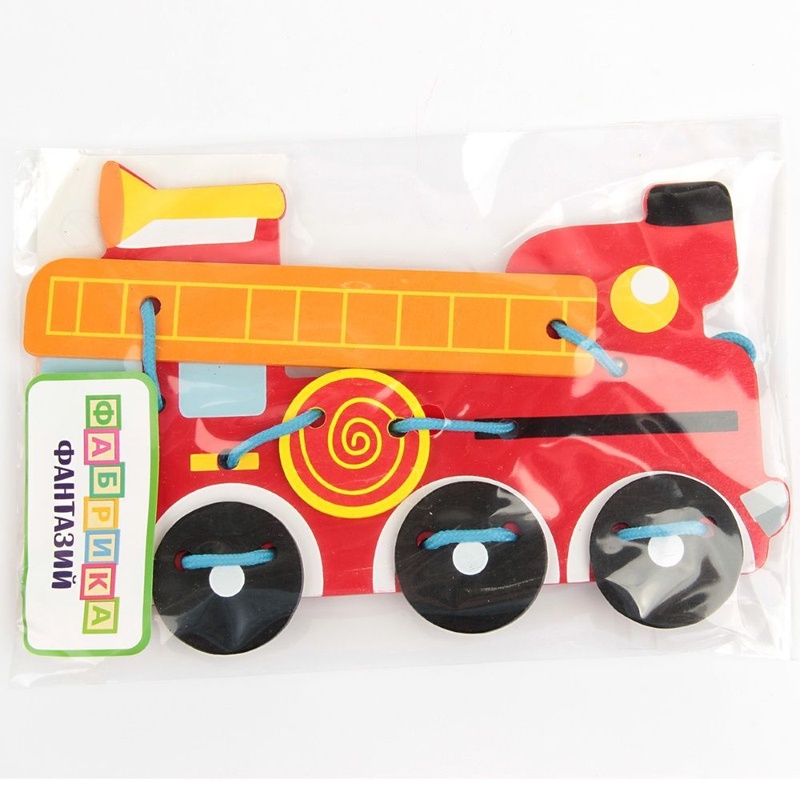 Деревянная шнуровка в виде красочного пожарного автомобиля - это оригинальная развивающая игрушка с дырочками. В комплекте есть шнурок, которым необходимо шнуровать дырочки. С помощью такой игрушки можно рассказать малышу, где у предмета верх, а где низ. Таким же образом объясните про правую и левую сторону, дополнительно попросив малыша засовывать шнурок правой и левой рукой попеременно. Играя с деревянной игрушкой, малыш будет тренировать координацию и моторику рук, точность глаза и ловкость пальцев. Малыша займет интересная игра со шнуровкой, в процессе которой будут развиваться логика и мелкая моторика рук. Это прекрасный тренажер для освоения навыков продевания шнура в отверстие.