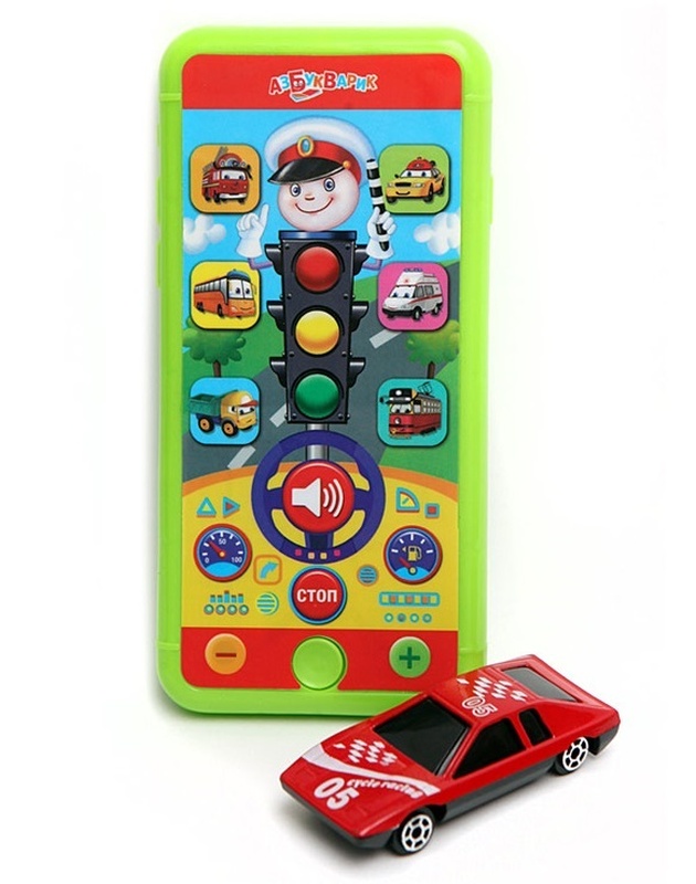 Нет в наличии ОтсутствуетСмартфончик Светофор в комплекте с игрушечной машинкой – отличный подарок для маленьких автолюбителей! Нажимай на кнопочки – знакомься с разными машинами, отвечай на веселые вопросы, отгадывай загадки! Играй с машинкой и смартфончиком – устрой настоящее ралли. Весёлые звуки (рёв мотора, визг тормозов и т.д.) и песенка сделают игру особенно увлекательной. Бонус - QR-код для бесплатного скачивания интерактивной книжки "Научи нас, светофор" в мобильном приложении "Азбукварик".