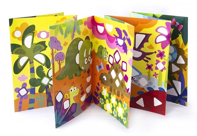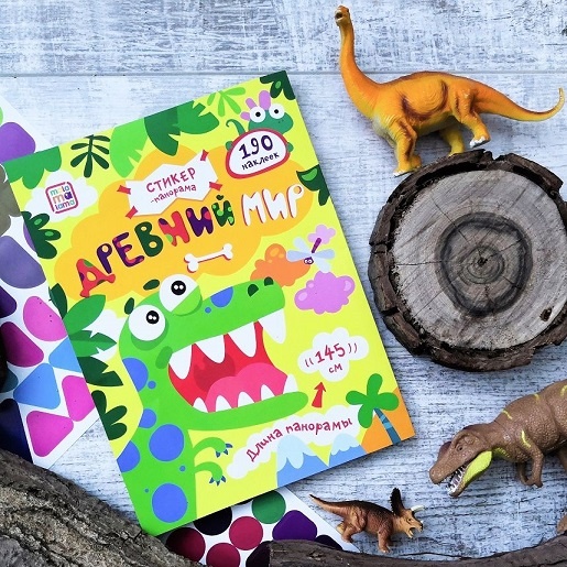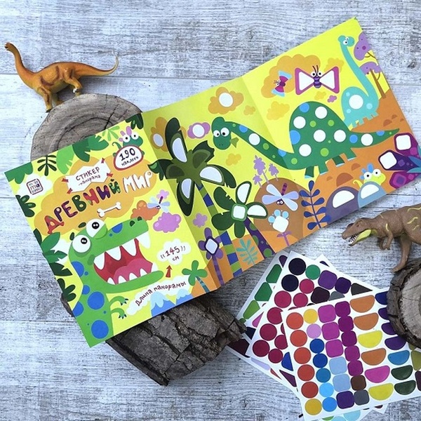 Красочные панорамные иллюстрации с наклейками, размер в разложенном виде 1400мм, 192 наклейки.