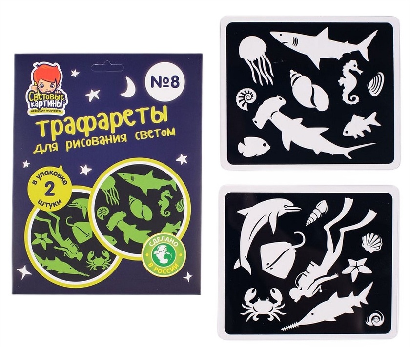 Набор СВЕТОВЫЕ КАРТИНЫ Трафарет №8 Подводный мир арт. 392 Наборы «Рисуй светом» под торговой маркой «Световые картины» являются премиальными продуктами и разработкой российской компании. Это уникальные планшеты, на которых можно рисовать в полной темноте с помощью специального маркера и видеть, как изменяется яркость рисунка. Трафареты позволяют детям, не владеющим в совершенстве техникой рисования, создавать картины легко и интересно с помощью различных готовых изображений. В наборе 18 изображений. Развитие фантазии и творческих способностей. Совместный досуг родителей и детей. Обучение детей в игровой форме. Арт-терапия. Наборы производятся из высококачественных материалов, поэтому срок службы не ограничен. Рекомендуемый возраст – с 3 лет Пол: для мальчиков, для девочек Производитель: ООО Планета. Страна обладатель бренда: Россия.