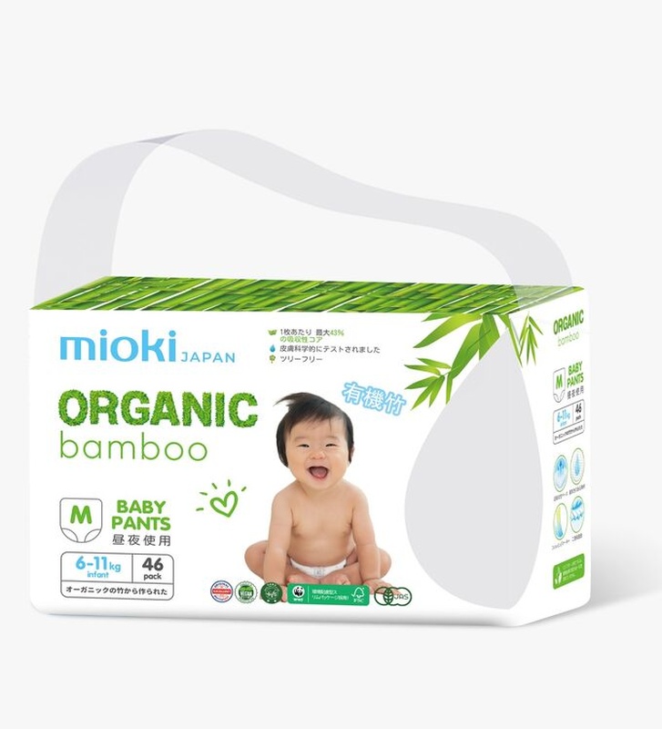 Mioki «Organic Bamboo» – ультратонкие и экстравпитывающие подгузники-трусики созданы по экологическому стандарту качества. Эко-линейка произведена с заботой об окружающей среде, с соблюдением требований к премиальному качеству детских средств гигиены. Сверхсухой контактный слой из бамбуковых волокон; Мягкая гипоаллергенная и дышащая внутренняя поверхность; Эластичный поясок и мягкие швы; Высокомолекулярный японский абсорбент; Линия индикатор для родителей; Сделан без латекса, отдушек и спирта. Не отбеливался хлором; Отсутствие парабенов, силикона, формальдегидов, фталатов и тяжелых металлов, которое гарантирует сертификация*; Произведен с соблюдением принципов экологической этики, на животных не тестировался. Размерный ряд подгузников-трусиков: M, L, XL, XXL. *Сертификация и контроль продукции производится не только при изготовлении, но и на этапе получения сырья. Это исключает применение какой-либо химической обработки эко-подгузников. Почему бамбук? Бамбук содержит уникальное вещество — «бамбуковый хинон», обладающее природными свойствами защиты от вредных бактерий и запаха. Если рассмотреть одинаковое количество бактерий с различными материалами под микроскопом, то можно увидеть, что бактерии могут размножаться в изделиях из хлопка и древесного волокна, в то время как бактерии в изделиях из бамбукового волокна исчезают, либо их количество уменьшается в течение короткого периода времени. А еще… В условиях с температурой воздуха 36 градусов и относительной влажности 100% - остаточная влажность бамбукового волокна превышает 45%, а его впитывающая способность в 3,5 раза сильнее, чем у хлопка. ДЕТАЛИЗИРОВАННАЯ ИНФОРМАЦИЯ Состав: бумага, распушенная целлюлоза, бамбуковые волокна, высокомолекулярный абсорбент, нетканый материал-полиэстер, ламинированная пленка, природное алоэ масло, резинки – полиуретан. Материал упаковки: полиэтилен. Преимущества: Т форма трусика-подгузника, ультратонкие, мягкость, скорость впитывания, японский SAP, подходят и для мальчиков, и для девочек, эластичный мягкий поясок, дышащая паропроницаемая пленка, лента утилизации, мягкие манжеты, индикатор влажности. Размерный ряд: M 6-11 кг, 46 штук L 9-14 кг, 42 штуки XL 12+ кг, 36 штук XXL 15+ кг, 34 штуки
