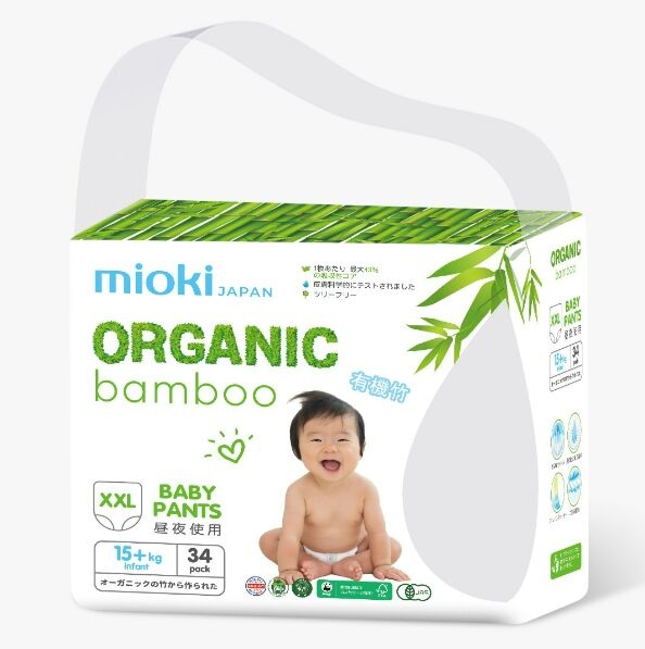 Mioki «Organic Bamboo» – ультратонкие и экстравпитывающие подгузники-трусики созданы по экологическому стандарту качества. Эко-линейка произведена с заботой об окружающей среде, с соблюдением требований к премиальному качеству детских средств гигиены. Сверхсухой контактный слой из бамбуковых волокон; Мягкая гипоаллергенная и дышащая внутренняя поверхность; Эластичный поясок и мягкие швы; Высокомолекулярный японский абсорбент; Линия индикатор для родителей; Сделан без латекса, отдушек и спирта. Не отбеливался хлором; Отсутствие парабенов, силикона, формальдегидов, фталатов и тяжелых металлов, которое гарантирует сертификация*; Произведен с соблюдением принципов экологической этики, на животных не тестировался. Размерный ряд подгузников-трусиков: M, L, XL, XXL. *Сертификация и контроль продукции производится не только при изготовлении, но и на этапе получения сырья. Это исключает применение какой-либо химической обработки эко-подгузников. Почему бамбук? Бамбук содержит уникальное вещество — «бамбуковый хинон», обладающее природными свойствами защиты от вредных бактерий и запаха. Если рассмотреть одинаковое количество бактерий с различными материалами под микроскопом, то можно увидеть, что бактерии могут размножаться в изделиях из хлопка и древесного волокна, в то время как бактерии в изделиях из бамбукового волокна исчезают, либо их количество уменьшается в течение короткого периода времени. А еще… В условиях с температурой воздуха 36 градусов и относительной влажности 100% - остаточная влажность бамбукового волокна превышает 45%, а его впитывающая способность в 3,5 раза сильнее, чем у хлопка. ДЕТАЛИЗИРОВАННАЯ ИНФОРМАЦИЯ Состав: бумага, распушенная целлюлоза, бамбуковые волокна, высокомолекулярный абсорбент, нетканый материал-полиэстер, ламинированная пленка, природное алоэ масло, резинки – полиуретан. Материал упаковки: полиэтилен. Преимущества: Т форма трусика-подгузника, ультратонкие, мягкость, скорость впитывания, японский SAP, подходят и для мальчиков, и для девочек, эластичный мягкий поясок, дышащая паропроницаемая пленка, лента утилизации, мягкие манжеты, индикатор влажности. Размерный ряд: M 6-11 кг, 46 штук L 9-14 кг, 42 штуки XL 12+ кг, 36 штук XXL 15+ кг, 34 штуки