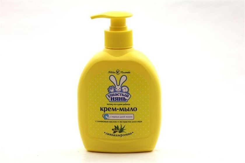 Жидкое крем-мыло с алоэ "Ушастый нянь", 300 мл Новое жидкое крем-мыло «Ушастый нянь» создано для ухода за кожей малыша с первых дней жизни. Оно бережно очищает и увлажняет нежную кожу ребёнка, обладая также свойствами геля для душа. Страна производитель – Россия.