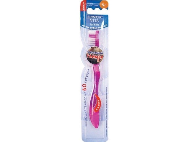 ЛОНГА ВИТА ДЕТ. ЗУБ.ЩЕТКА АРТ.F-32N МИГАЮЩАЯ ОРИГИНАЛЬНАЯ, 5-10 ЛЕТ Цвета: розовая, малиновая, красная, желтая, синяя, зеленая Уникальная зубная щетка, с которой дети захотят чистить зубы! Щётка имеет мигающий таймер (60 сек.) Цветовое поле на щетине чистящей головки для оптимального нанесения зубной пасты Эргономичная ручка с противоскользящей поверхностью Небольшая чистящая головка и мягкая щетина Tynex (DuPont) Силовой выступ для большого пальца
