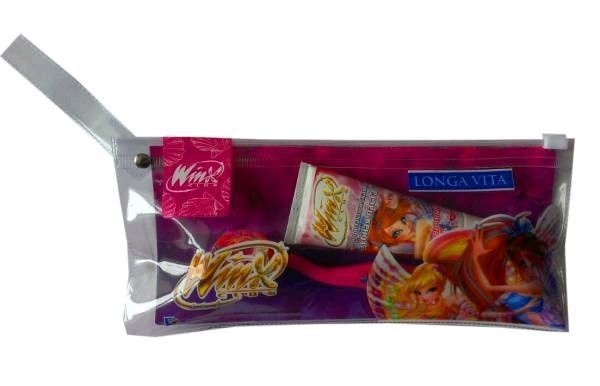 Нет в наличии ОтсутствуетLONGA VITA дорожный набор Winx Club (зуб.паста и зуб.щетка с колпачком) от 3-х лет Дорожный набор в виде стильной сумочки с изображением любимых героинь Longa Vita "Winx" разработан специально для девочек от трех лет. В состав набора входит профилактическая зубная паста и детская зубная щётка с защитным колпачком. Зубная паста со вкусом земляничного коктейля оказывает противовоспалительное действие, обеспечивает надежную защиту детских зубов от кариеса, укрепляет зубную эмаль, где бы вы ни находились. Она безопасна при проглатывании: не содержит SLS, фтор, парабены и трикзолан. Зубная щетка с защитным колпачком - это идеальное решения для сохранения зубной щетки в чистоте. Щетка имеет небольшую чистящую головку, цветовое поле щетины для оптимального дозирования пасты и специальную мягкую поверхность для чистки языка. зубная паста WINX зубная щётка WINX с защитным колпачком СУМОЧКА с изображением любимых героинь