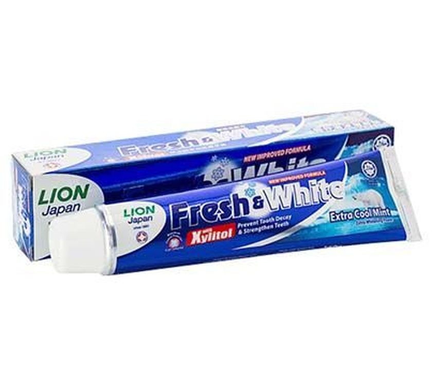 Нет в наличии ОтсутствуетLION "Фреш энд Вайт" Зубная паста 75гр "Fresh Cool Mint" мятная свежесть Зубная паста Fresh & White разработана по особой японской формуле, которая обеспечивает комплексный уход за полостью рта и защищает зубы от кариеса. Главные действующие компоненты – двойной фтор, карбонат кальция и витамин Е. Кальций эффективно укрепляет зубную эмаль, витамин Е заботится о деснах. Двойной фтор активно защитит зубы от кариеса и укрепляет прикорневую зону. Зубная паста превращается в микропену, которая легко проникает между зубами, делая чистку на 15% более эффективной. Прекрасно и надолго освежает дыхание. Способ применения: для ежедневного использования 2 раза в день или после еды. Меры предосторожности: хранить в недоступном для детей месте. Рекомендуется для детей старше 6 лет. Способ хранения: хранить в прохладном сухом месте. Состав: карбонат кальция, вода, сорбитол, гидратированный диоксид кремния, пропиленгликоль, лаурилсульфат натрия, целлюлозная камедь, ароматизатор, ксилит, монофторфосфат натрия, сахарин натрия, силикат натрия, трикаприлин, метилпарабен, этилпарабен, бутилпарабен, фторид натрия <0.5, токоферол ацетат. Состав: карбонат кальция, вода, сорбитол, гидратированный диоксид кремния, пропиленгликоль, лаурилсульфат натрия, целлюлозная камедь, ароматизатор, ксилит, монофторфосфат натрия, сахарин натрия, силикат натрия, трикаприлин, метилпарабен, этилпарабен, бутилпарабен, фторид натрия <0.5, токоферол ацетат. Произведено в Южной Корее.