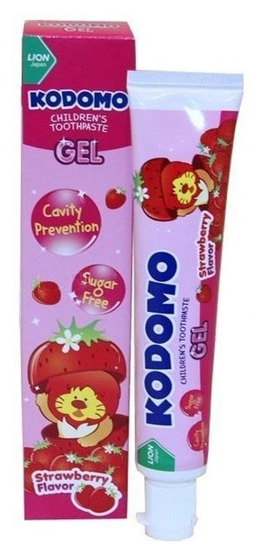 LION KODOMO Детская зубная паста, гелевая, со вкусом клубники, 40гр. Детская зубная паста “Kodomo LION” с клубничным вкусом подходит для младенцев и детей от 6 мес до 6 лет. Новейшая формула пасты содержит флуорид и ксилитол которые активно снабжают детские зубки нужными минеральными элементами. Предотвращает появление кариеса на молочных зубках, укрепляет их, сберегая их прочность и целостность. В составе только натуральные и безопасные компоненты, которые позволяют очищать самые первые зубки. Объем 40 гр Страна-производитель Япония Бренд LION