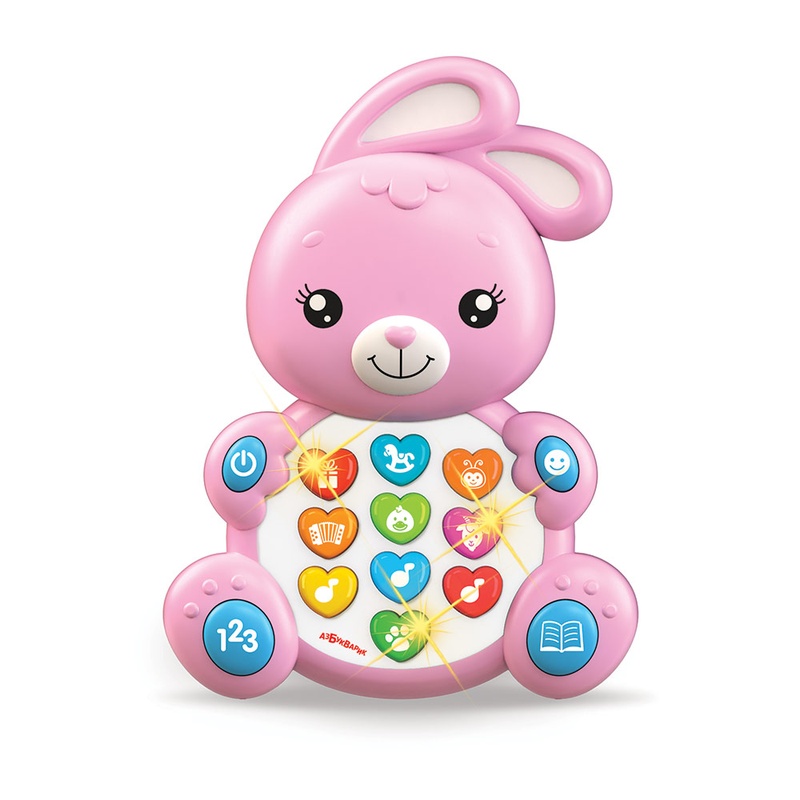 Нет в наличии ОтсутствуетМалыш обязательно подружится с этим милым зайкой! Игрушку отличает разнообразное содержание: вместе с ней ребёнок будет петь любимые песенки и потешки («Пусть бегут неуклюже», «Весёлая карусель», «Добрый жук», «Антошка», «Два весёлых гуся», «Идёт коза рогатая»), танцевать под весёлые мелодии, слушать сказки («Колобок», «Гуси-лебеди») и даже выучит счёт до пяти с обучающей песенкой! Таким образом, игрушка не только развлекает малыша, но и развивает его музыкальные и танцевальные способности, расширяет кругозор. Разноцветные кнопочки и рельефные элементы игрушки способствуют развитию тактильных ощущений. А весёлые огоньки, мигающие под музыку, создают ощущение праздника! По QR-коду внутри упаковки можно скачать интерактивную книгу «Первые знания» для смартфона или планшета.